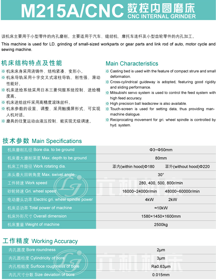 我公司主要产品有:内圆磨、无心磨、数控一轴和二轴,也可按客户零件要求设计及改装专用磨床。