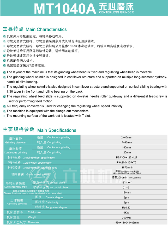 我公司主要产品有:内圆磨、无心磨、数控一轴和二轴,也可按客户零件要求设计及改装专用磨床。