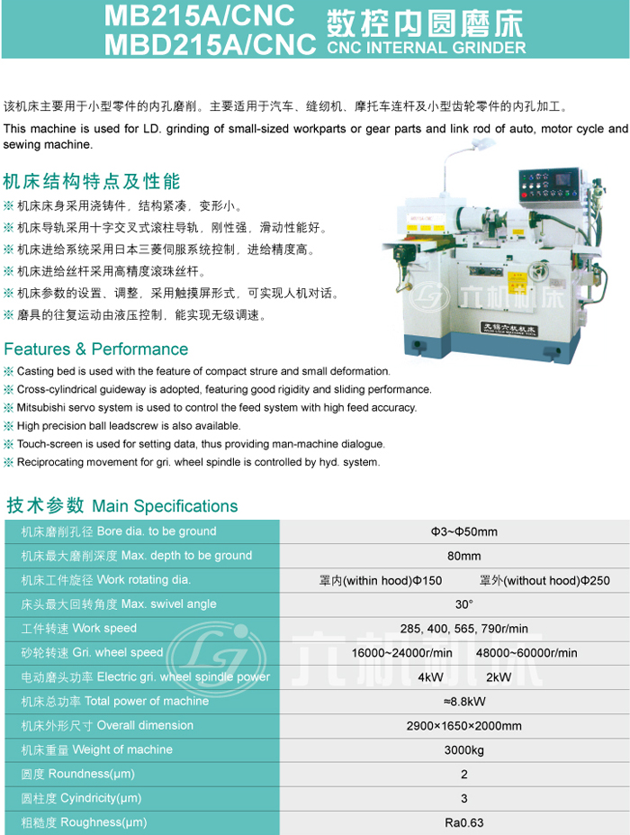 我公司主要产品有:内圆磨、无心磨、数控一轴和二轴,也可按客户零件要求设计及改装专用磨床。